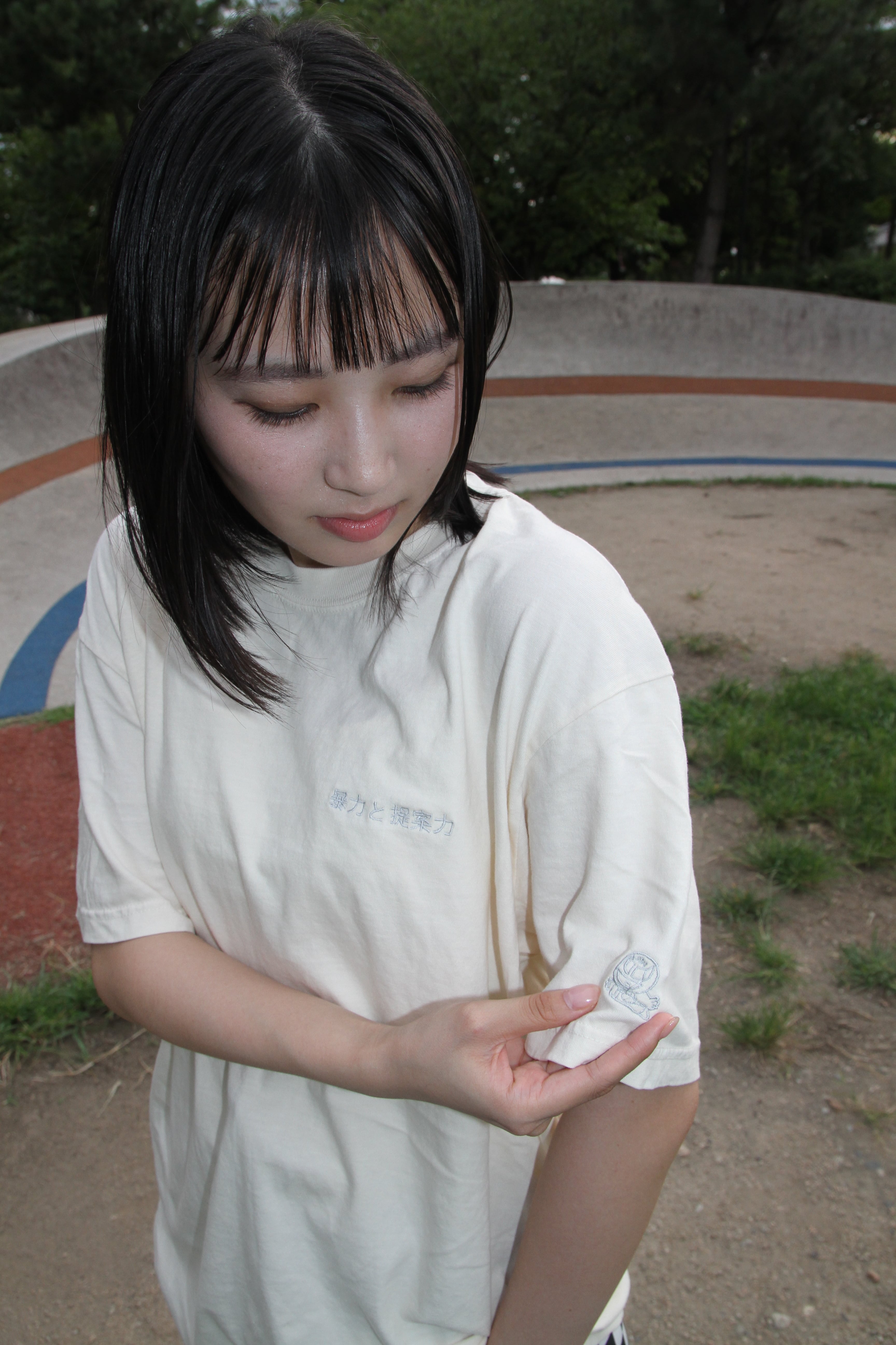 完売御礼_刺繍こなれTee「暴力と提案力(アイボリー)」