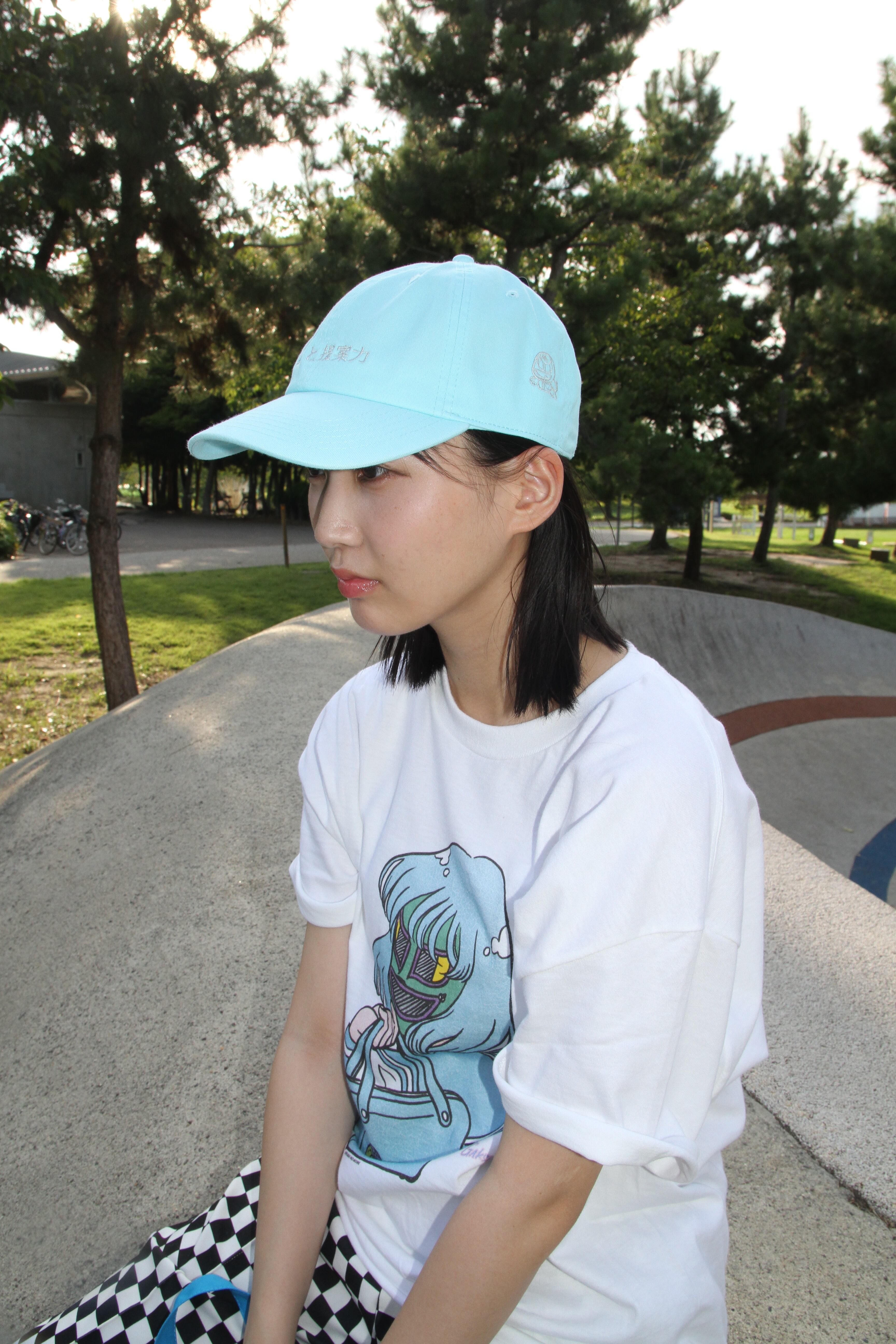 注)なお、商品紹介画像では、サイズ感の見本として「水色」の着用画像もアップしてますが、このページは「刺繍キャップ(くすんだブルー)」の注文ページとなります。ご注意ください。