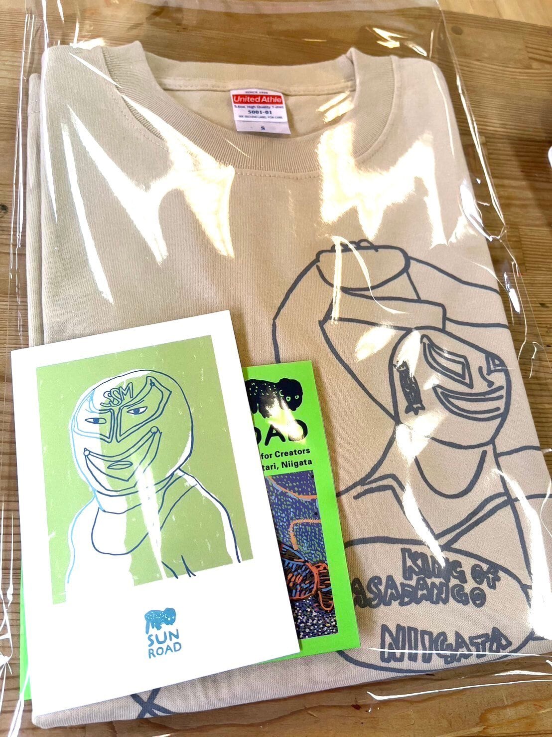 なお、Teeシャツのボディは、さんろーどさんがいつも使っているUnitedAthle社のボディを使っています。クオリティは、ササダンゴ商会の定番Teeシャツと同等の「綿100%」で「5.6オンス」ですが、サイズ感は少しだけ異なりますので、下記サイズ数値を参考に購入をご検討ください。