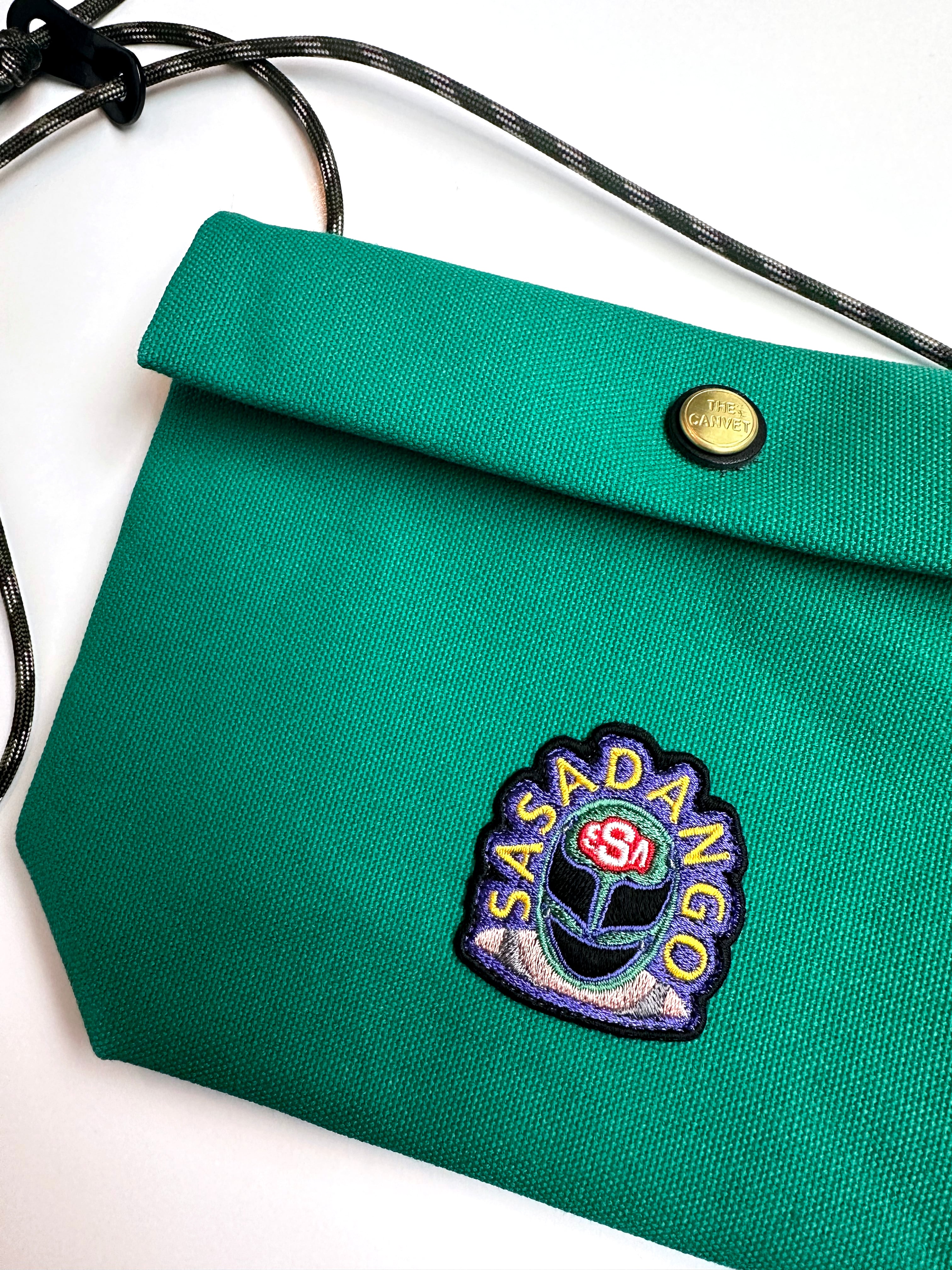 ササダンゴマシンも出演しているBSNテレビ『水曜見ナイト』での取材が切っ掛けで電撃的に商品化が決定した、新潟市東区のバッグブランド「スパンギャルド」さんによるデザインが施された刺繍ワッペン付きのサコッシュ。しっかりとした素材で、丁寧に縫製された逸品です。長く愛用して頂ける商品が完成しました。