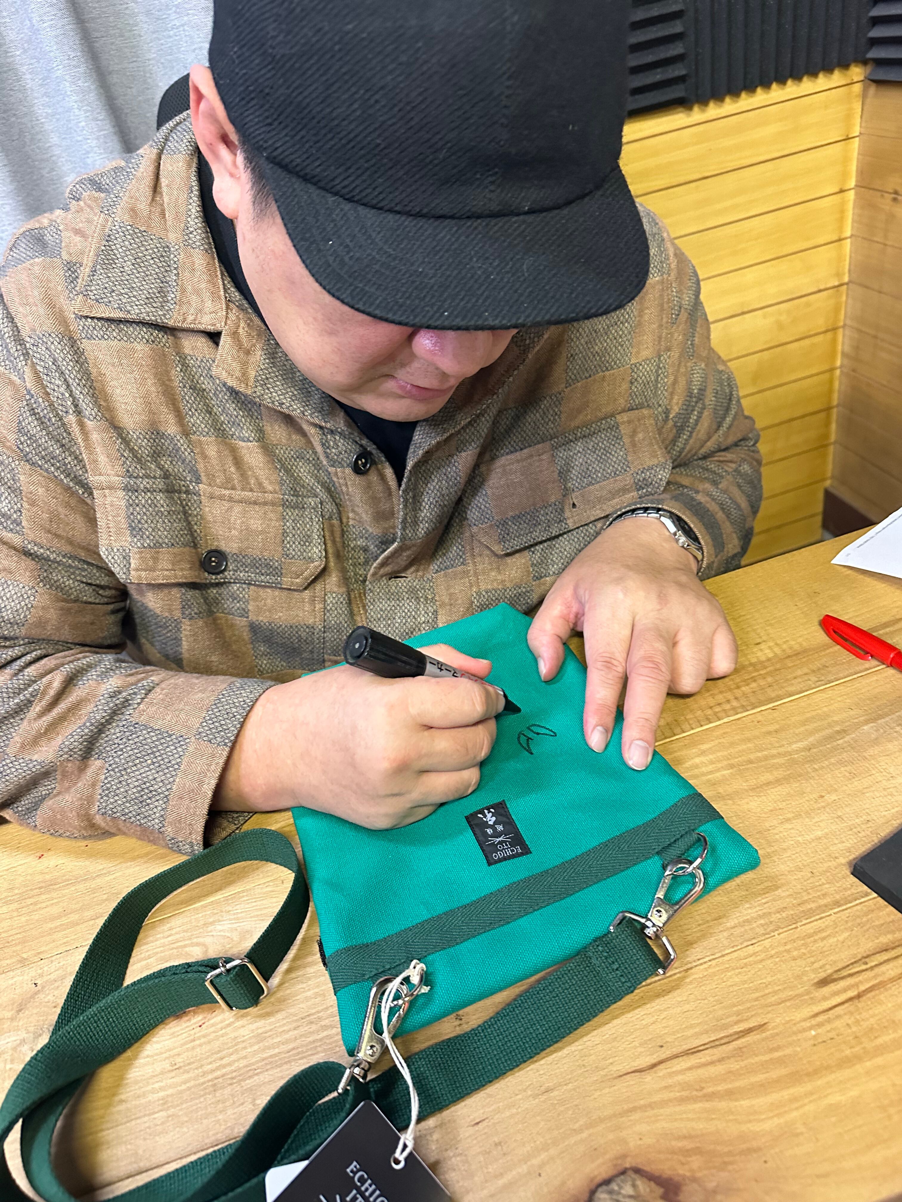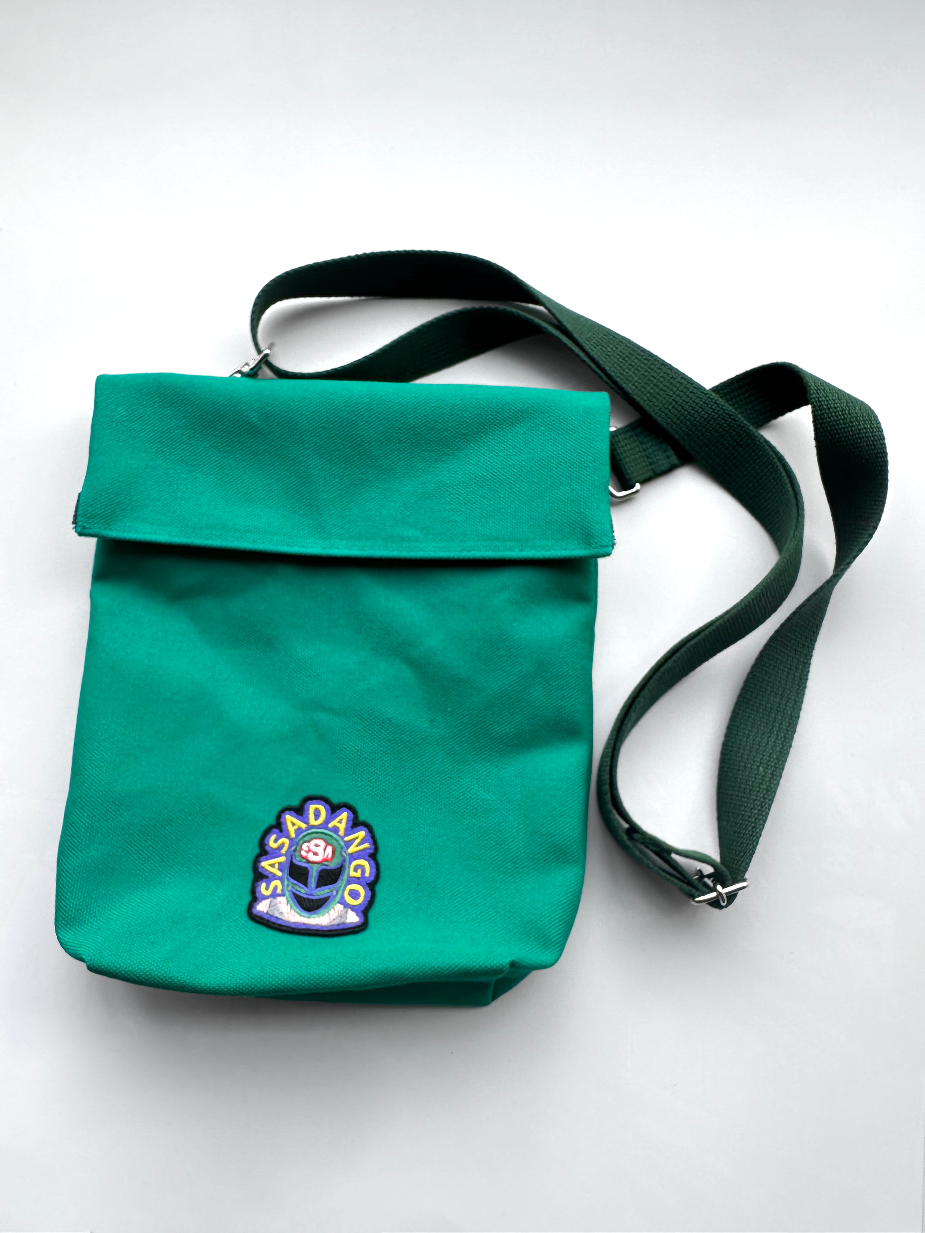 ササダンゴマシンも出演しているBSNテレビ『水曜見ナイト』での取材が切っ掛けで電撃的に商品化が決定した、新潟市東区のバッグブランド「スパンギャルド」さんによるデザインが施された刺繍ワッペン付きのポシェット。しっかりとした素材で、丁寧に縫製された逸品です。長く愛用して頂ける商品が完成しました。